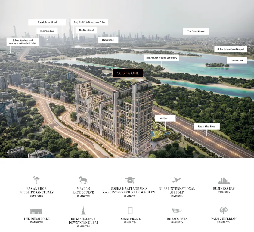 Sobha One is a premium waterfront residential development in MBR City offering luxurious apartments with stunning views of Ras Al Khor Wildlife Sanctuary and a world-class golf course. Designed for modern urban living, it combines nature, luxury, and connectivity in one iconic destination.