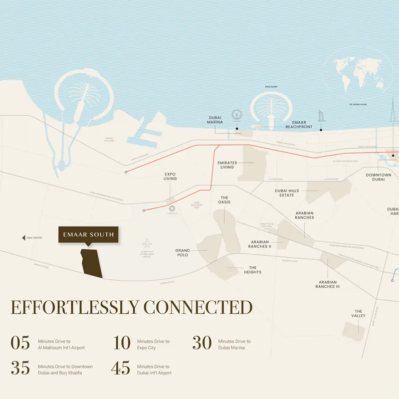 The project is strategically located near Al Maktoum International Airport and Expo City Dubai, making it a prime destination for both investors and end-users. With seamless connectivity to major highways, residents enjoy easy access to key areas of Dubai.